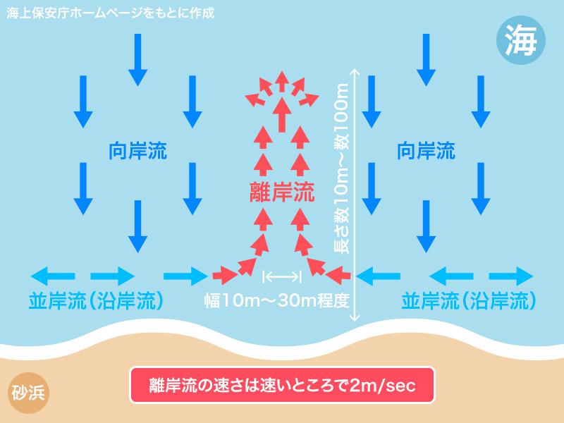 出典:知らないと怖い「離岸流」の特性と対処法 - ウェザーニュース
